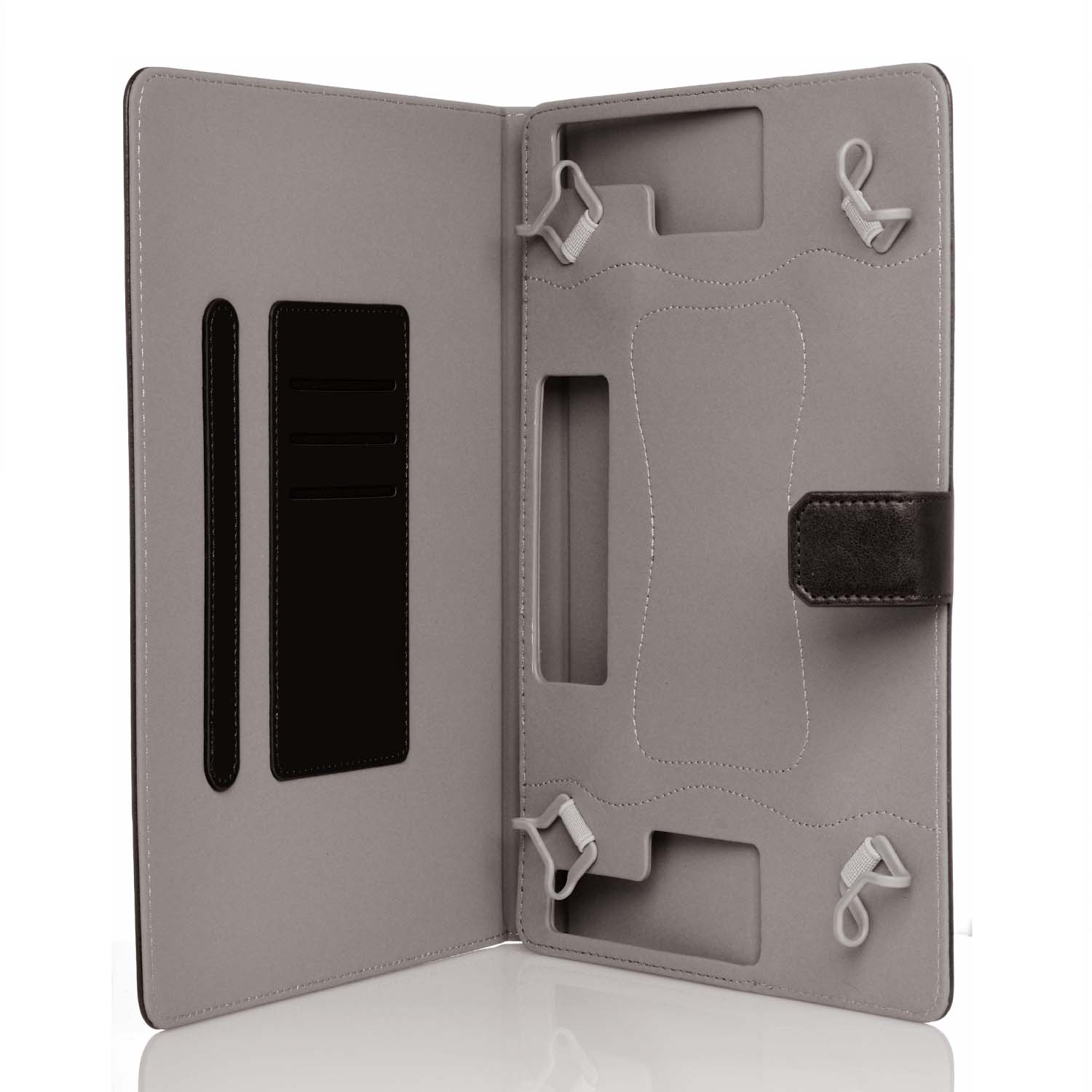 Zaštitite svoj tablet od prljavštine, prašine i ogrebotina kvalitetnom kožnom torbicom s magnetskim zatvaračem. Dostupne veličine su univerzalna manja (7/8") i univerzalna veća (9/10") koje zahvaljujući podesivim držačima savršeno pristaju svakom tabletu.